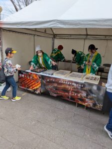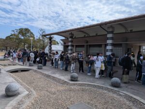 午後12時と1時の2回、合計300名にふるまい。開始の前には多くの方が列をなし、食された方は「実がふっくらして美味しい」と喜んでいました。